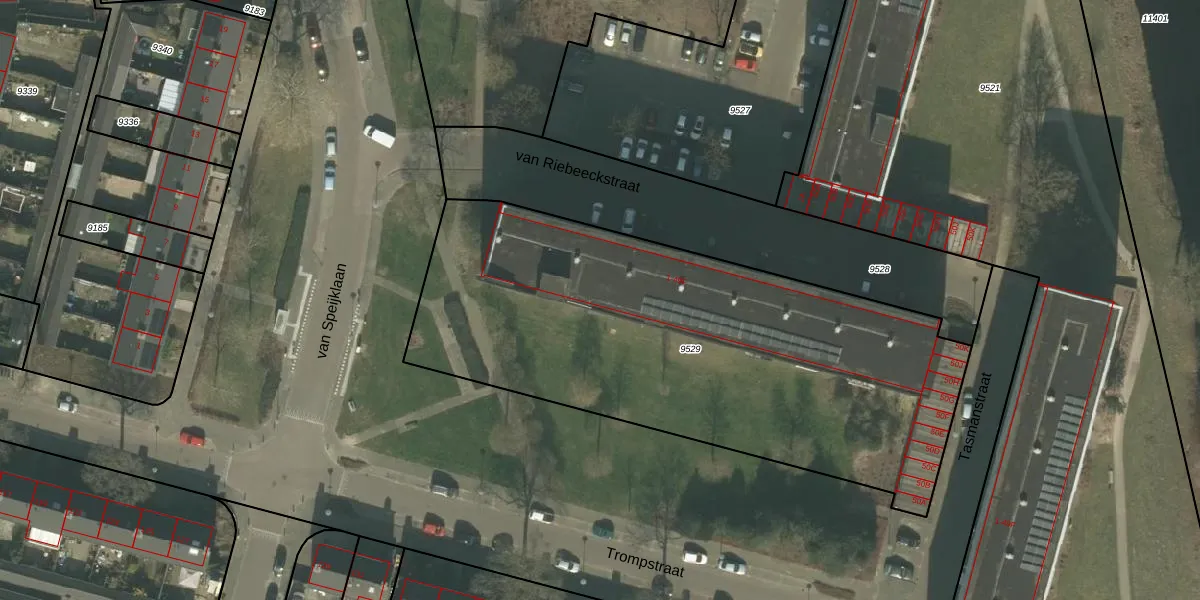Het perceel waarop van Riebeeckstraat 42 staat heeft een oppervlakte van 2705 m². Dit is een zeer groot perceel. De perceeloppervlakte wordt geregistreerd door het Kadaster. Gedetailleerde informatie over de maten van dit perceel kunt u vinden in het rapport Kadastrale kaart met maatvoering van van Riebeeckstraat 42.
