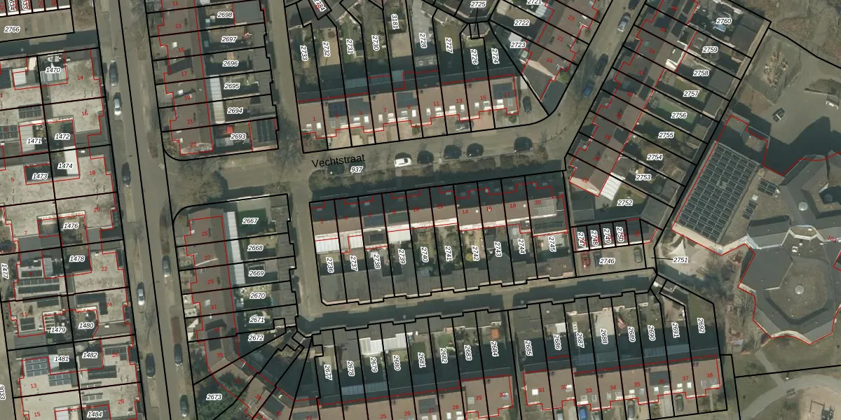 Vechtstraat 10 is gelegen op kadastraal perceel HMD00O2740. Deze kadastrale aanduiding is uniek en wordt gebruikt door het Kadaster om eigendomsrechten en andere zakelijke rechten vast te leggen. Het perceel maakt onderdeel uit van de kadastrale gemeente Helmond.