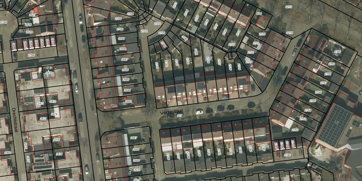 Vechtstraat 5 is gelegen op kadastraal perceel HMD00O2731. Deze kadastrale aanduiding is uniek en wordt gebruikt door het Kadaster om eigendomsrechten en andere zakelijke rechten vast te leggen. Het perceel maakt onderdeel uit van de kadastrale gemeente Helmond.