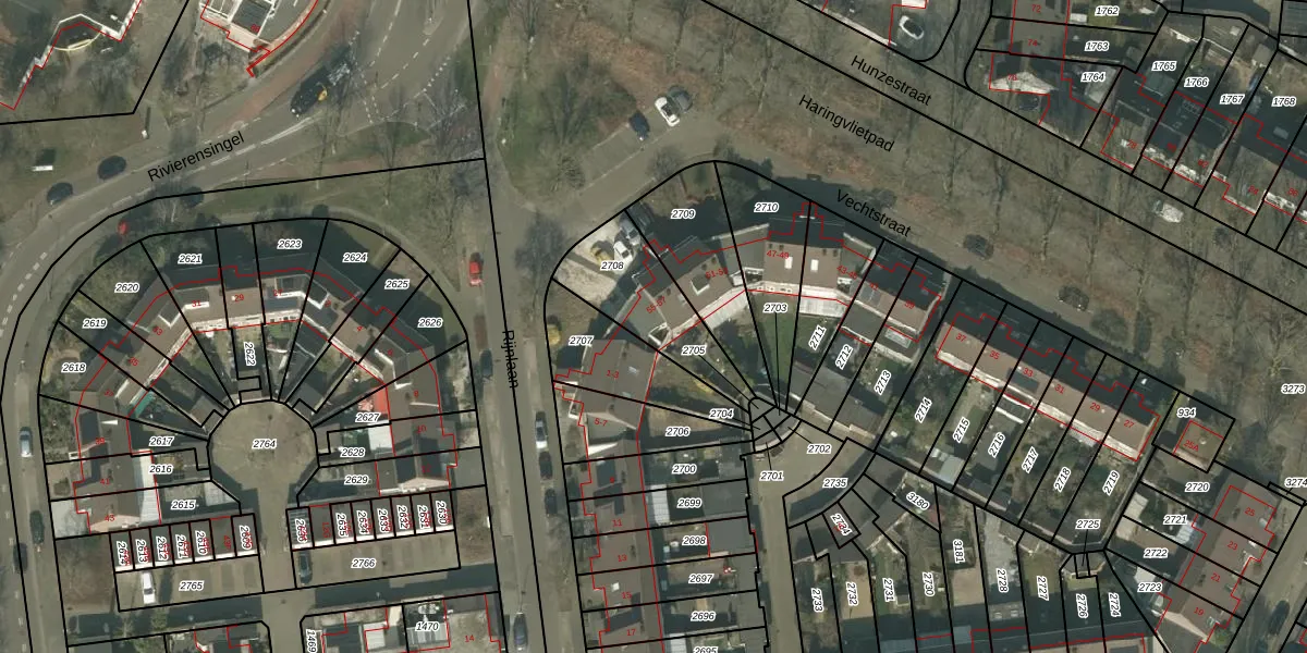 Vechtstraat 57 is gelegen op kadastraal perceel HMD00O2708. Deze kadastrale aanduiding is uniek en wordt gebruikt door het Kadaster om eigendomsrechten en andere zakelijke rechten vast te leggen. Het perceel maakt onderdeel uit van de kadastrale gemeente Helmond.