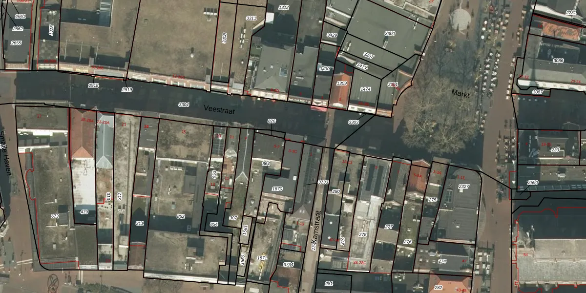 Het perceel waarop Veestraat 3 staat heeft een oppervlakte van 225 m². Dit is een middelgroot perceel. De perceeloppervlakte wordt geregistreerd door het Kadaster. Gedetailleerde informatie over de maten van dit perceel kunt u vinden in het rapport Kadastrale kaart met maatvoering van Veestraat 3.