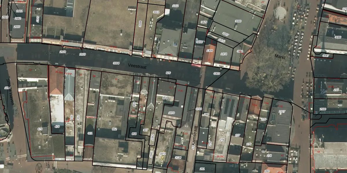 Het perceel waarop Veestraat 5 staat heeft een oppervlakte van 217 m². Dit is een middelgroot perceel. De perceeloppervlakte wordt geregistreerd door het Kadaster. Gedetailleerde informatie over de maten van dit perceel kunt u vinden in het rapport Kadastrale kaart met maatvoering van Veestraat 5.