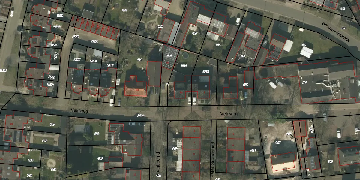 Veldweg 8-A is gelegen op kadastraal perceel HMD00O2530. Deze kadastrale aanduiding is uniek en wordt gebruikt door het Kadaster om eigendomsrechten en andere zakelijke rechten vast te leggen. Het perceel maakt onderdeel uit van de kadastrale gemeente Helmond.