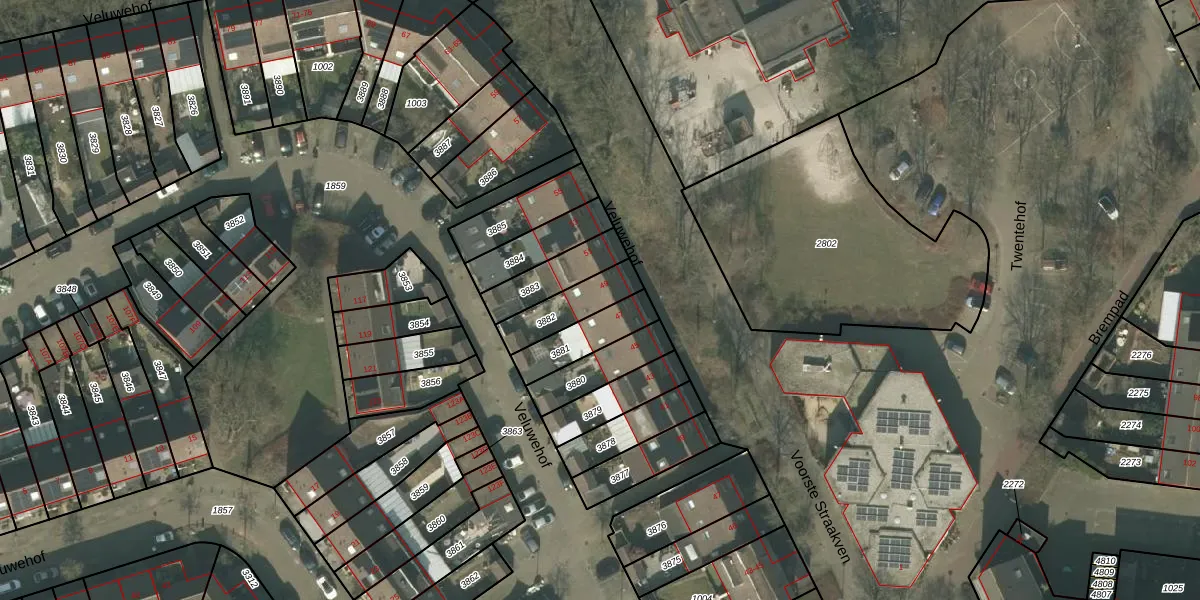 Het perceel waarop Veluwehof 49 staat heeft een oppervlakte van 142 m². Dit is een middelgroot perceel. De perceeloppervlakte wordt geregistreerd door het Kadaster. Gedetailleerde informatie over de maten van dit perceel kunt u vinden in het rapport Kadastrale kaart met maatvoering van Veluwehof 49.