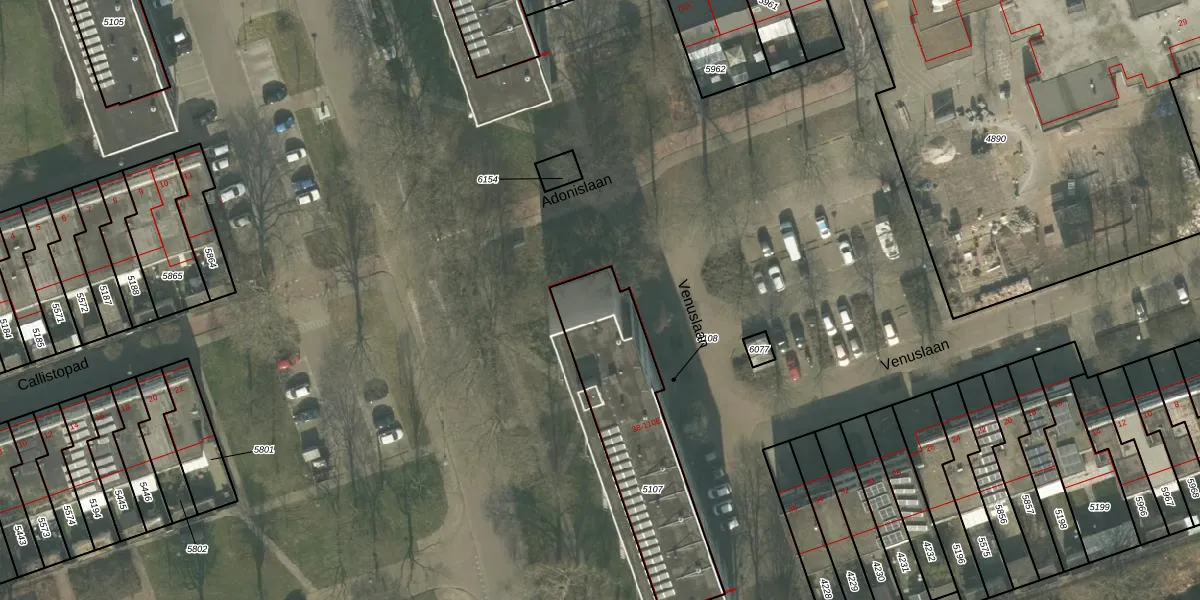 Het perceel waarop Venuslaan 60 staat heeft een oppervlakte van 672 m². Dit is een groot perceel. De perceeloppervlakte wordt geregistreerd door het Kadaster. Gedetailleerde informatie over de maten van dit perceel kunt u vinden in het rapport Kadastrale kaart met maatvoering van Venuslaan 60.
