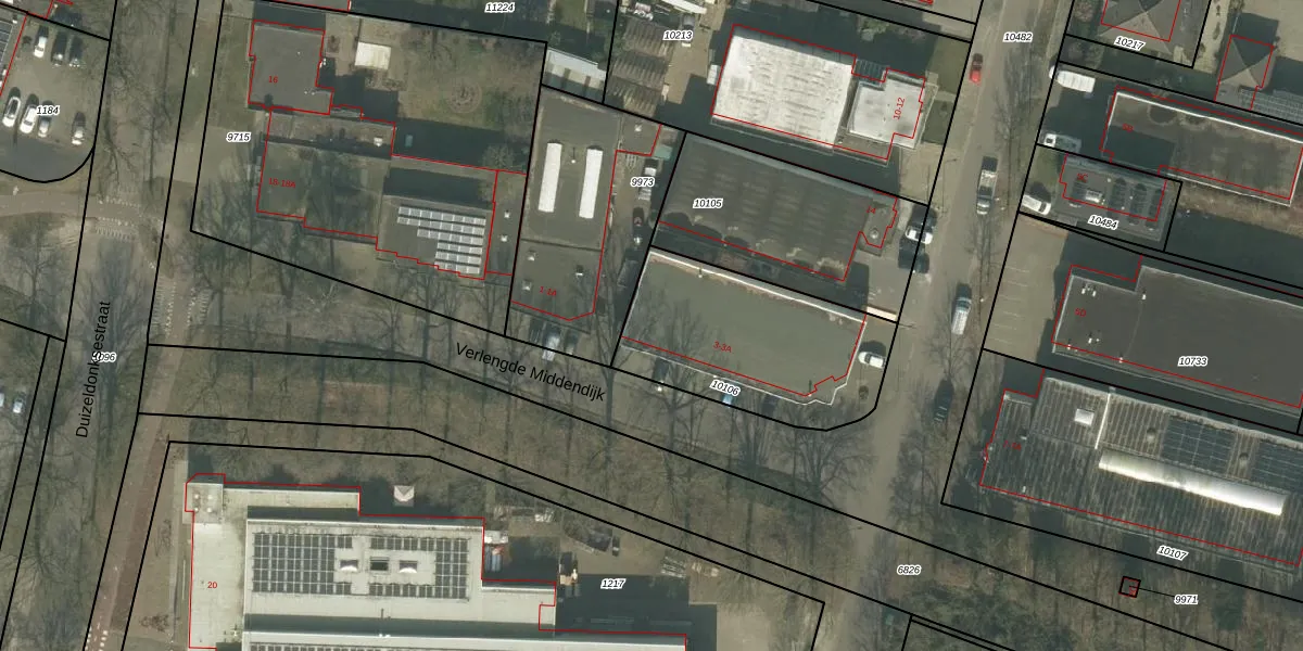 Verlengde Middendijk 3-A is gelegen op kadastraal perceel HMD00C10106. Deze kadastrale aanduiding is uniek en wordt gebruikt door het Kadaster om eigendomsrechten en andere zakelijke rechten vast te leggen. Het perceel maakt onderdeel uit van de kadastrale gemeente Helmond.