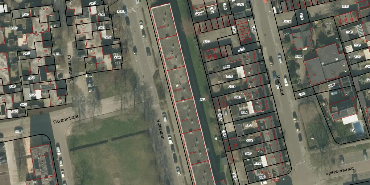 Vinkelaan 104 is gelegen op kadastraal perceel HMD00E947. Deze kadastrale aanduiding is uniek en wordt gebruikt door het Kadaster om eigendomsrechten en andere zakelijke rechten vast te leggen. Het perceel maakt onderdeel uit van de kadastrale gemeente Helmond.