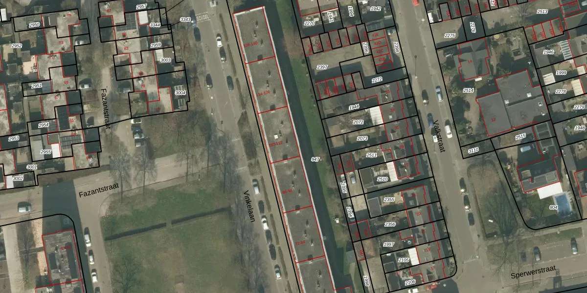 Het perceel waarop Vinkelaan 106 staat heeft een oppervlakte van 2427 m². Dit is een zeer groot perceel. De perceeloppervlakte wordt geregistreerd door het Kadaster. Gedetailleerde informatie over de maten van dit perceel kunt u vinden in het rapport Kadastrale kaart met maatvoering van Vinkelaan 106.