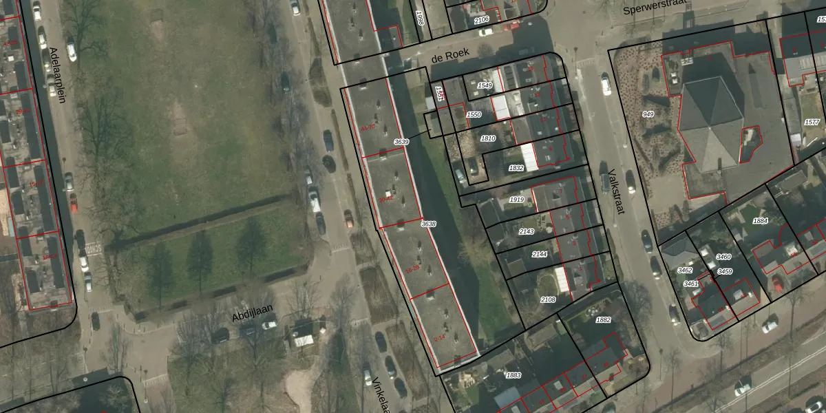 Het perceel waarop Vinkelaan 36 staat heeft een oppervlakte van 1604 m². Dit is een zeer groot perceel. De perceeloppervlakte wordt geregistreerd door het Kadaster. Gedetailleerde informatie over de maten van dit perceel kunt u vinden in het rapport Kadastrale kaart met maatvoering van Vinkelaan 36.