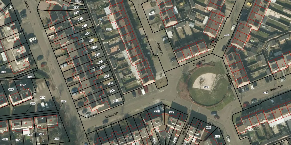 Het perceel waarop Vogezen 3 staat heeft een oppervlakte van 2450 m². Dit is een zeer groot perceel. De perceeloppervlakte wordt geregistreerd door het Kadaster. Gedetailleerde informatie over de maten van dit perceel kunt u vinden in het rapport Kadastrale kaart met maatvoering van Vogezen 3.