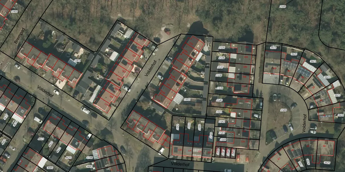 Het perceel waarop Volderhof 142 staat heeft een oppervlakte van 1984 m². Dit is een zeer groot perceel. De perceeloppervlakte wordt geregistreerd door het Kadaster. Gedetailleerde informatie over de maten van dit perceel kunt u vinden in het rapport Kadastrale kaart met maatvoering van Volderhof 142.