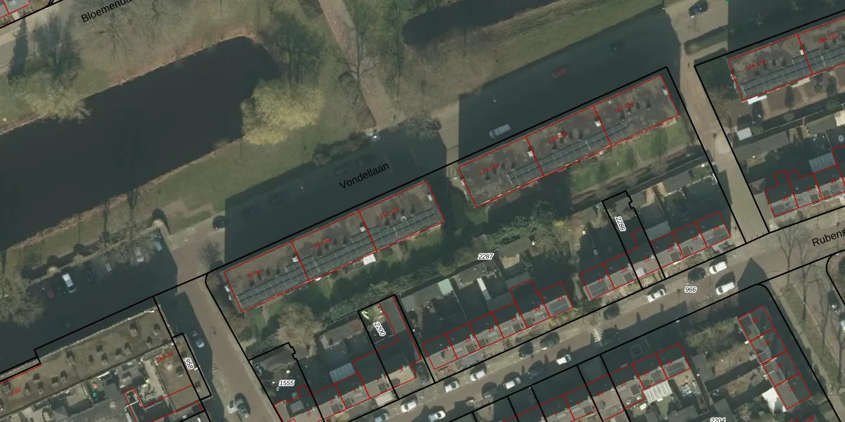 Het perceel waarop Vondellaan 120 staat heeft een oppervlakte van 4886 m². Dit is een zeer groot perceel. De perceeloppervlakte wordt geregistreerd door het Kadaster. Gedetailleerde informatie over de maten van dit perceel kunt u vinden in het rapport Kadastrale kaart met maatvoering van Vondellaan 120.