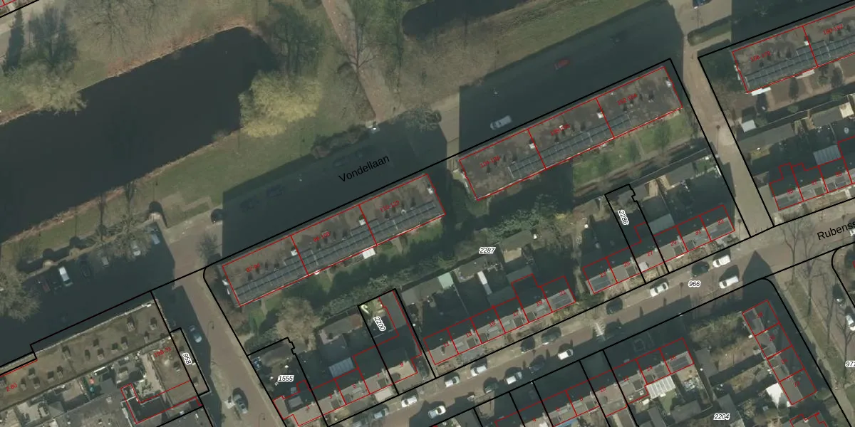 Vondellaan 122 is gelegen op kadastraal perceel HMD00E2287. Deze kadastrale aanduiding is uniek en wordt gebruikt door het Kadaster om eigendomsrechten en andere zakelijke rechten vast te leggen. Het perceel maakt onderdeel uit van de kadastrale gemeente Helmond.