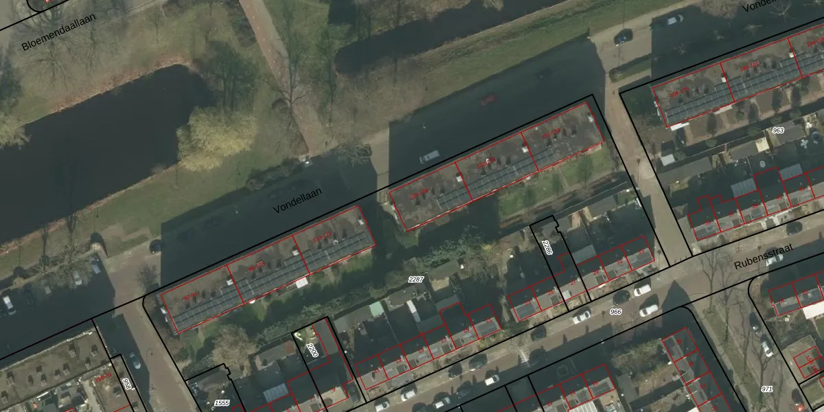 Vondellaan 126 is gelegen op kadastraal perceel HMD00E2287. Deze kadastrale aanduiding is uniek en wordt gebruikt door het Kadaster om eigendomsrechten en andere zakelijke rechten vast te leggen. Het perceel maakt onderdeel uit van de kadastrale gemeente Helmond.