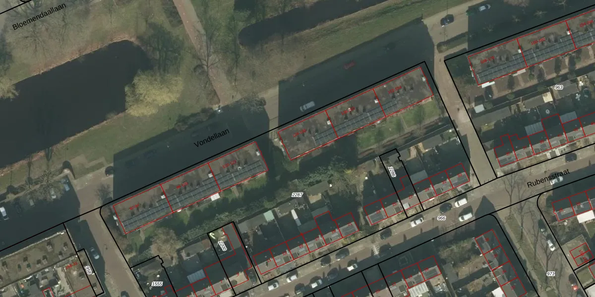 Het perceel waarop Vondellaan 128 staat heeft een oppervlakte van 4886 m². Dit is een zeer groot perceel. De perceeloppervlakte wordt geregistreerd door het Kadaster. Gedetailleerde informatie over de maten van dit perceel kunt u vinden in het rapport Kadastrale kaart met maatvoering van Vondellaan 128.