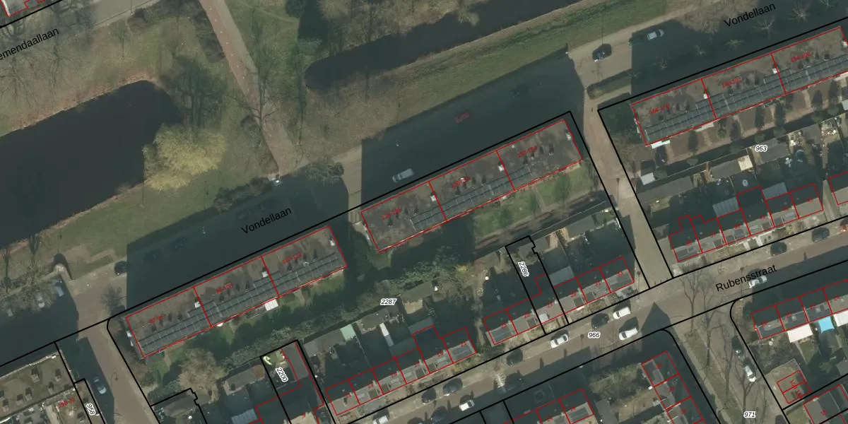 Het perceel waarop Vondellaan 134 staat heeft een oppervlakte van 4886 m². Dit is een zeer groot perceel. De perceeloppervlakte wordt geregistreerd door het Kadaster. Gedetailleerde informatie over de maten van dit perceel kunt u vinden in het rapport Kadastrale kaart met maatvoering van Vondellaan 134.