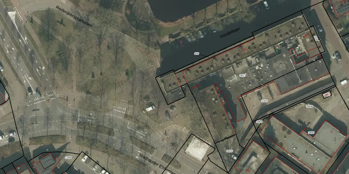 Het perceel waarop Vondellaan 14 staat heeft een oppervlakte van 2912 m². Dit is een zeer groot perceel. De perceeloppervlakte wordt geregistreerd door het Kadaster. Gedetailleerde informatie over de maten van dit perceel kunt u vinden in het rapport Kadastrale kaart met maatvoering van Vondellaan 14.