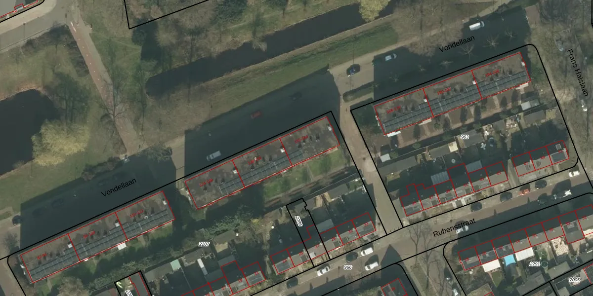 Vondellaan 154 is gelegen op kadastraal perceel HMD00E2287. Deze kadastrale aanduiding is uniek en wordt gebruikt door het Kadaster om eigendomsrechten en andere zakelijke rechten vast te leggen. Het perceel maakt onderdeel uit van de kadastrale gemeente Helmond.