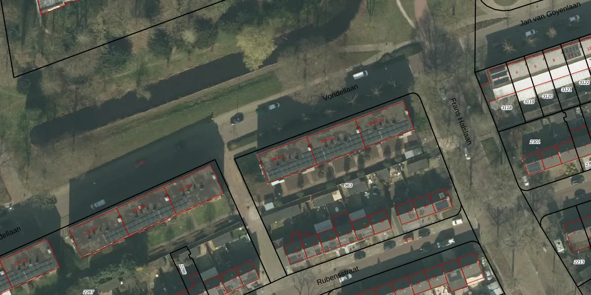 Het perceel waarop Vondellaan 172 staat heeft een oppervlakte van 2847 m². Dit is een zeer groot perceel. De perceeloppervlakte wordt geregistreerd door het Kadaster. Gedetailleerde informatie over de maten van dit perceel kunt u vinden in het rapport Kadastrale kaart met maatvoering van Vondellaan 172.