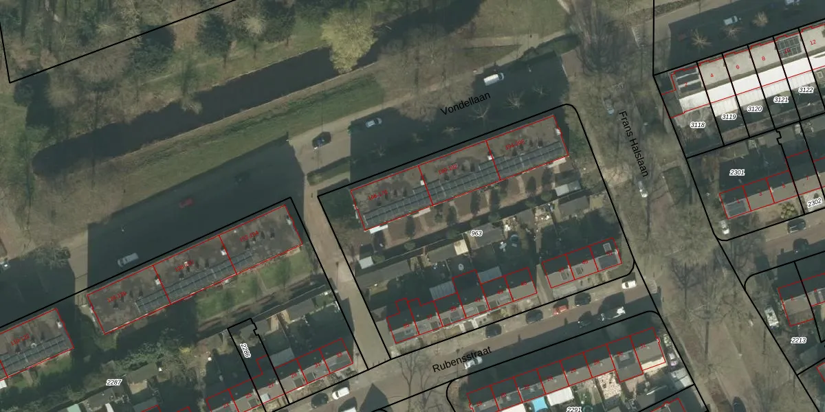 Het perceel waarop Vondellaan 178 staat heeft een oppervlakte van 2847 m². Dit is een zeer groot perceel. De perceeloppervlakte wordt geregistreerd door het Kadaster. Gedetailleerde informatie over de maten van dit perceel kunt u vinden in het rapport Kadastrale kaart met maatvoering van Vondellaan 178.