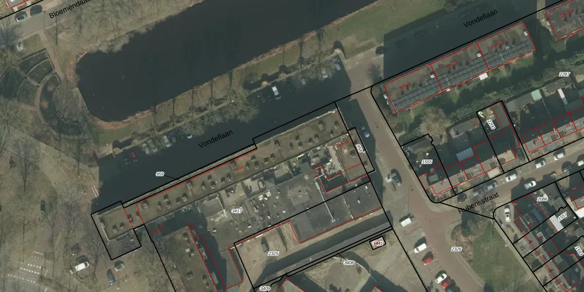 Het perceel waarop Vondellaan 68 staat heeft een oppervlakte van 2912 m². Dit is een zeer groot perceel. De perceeloppervlakte wordt geregistreerd door het Kadaster. Gedetailleerde informatie over de maten van dit perceel kunt u vinden in het rapport Kadastrale kaart met maatvoering van Vondellaan 68.