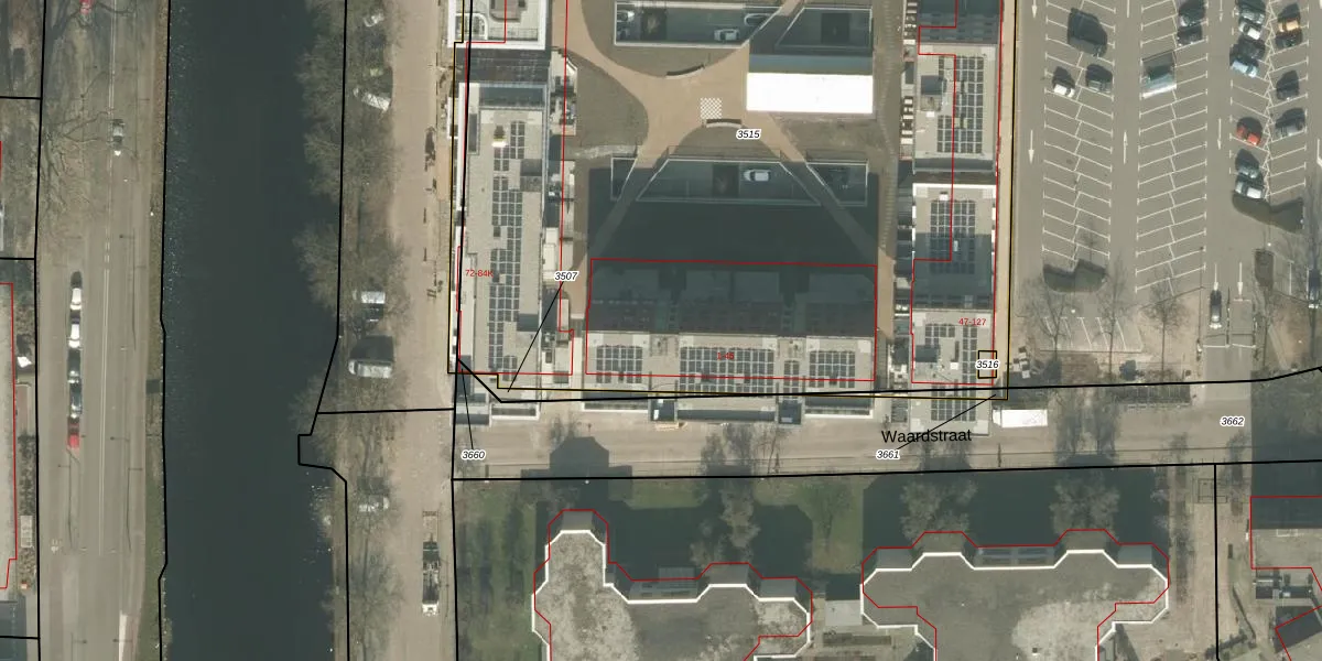 Het perceel waarop Waardstraat 13 staat heeft een oppervlakte van 6372 m². Dit is een zeer groot perceel. De perceeloppervlakte wordt geregistreerd door het Kadaster. Gedetailleerde informatie over de maten van dit perceel kunt u vinden in het rapport Kadastrale kaart met maatvoering van Waardstraat 13.