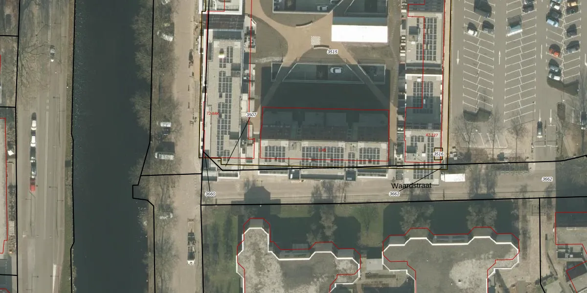 Het perceel waarop Waardstraat 9 staat heeft een oppervlakte van 6372 m². Dit is een zeer groot perceel. De perceeloppervlakte wordt geregistreerd door het Kadaster. Gedetailleerde informatie over de maten van dit perceel kunt u vinden in het rapport Kadastrale kaart met maatvoering van Waardstraat 9.
