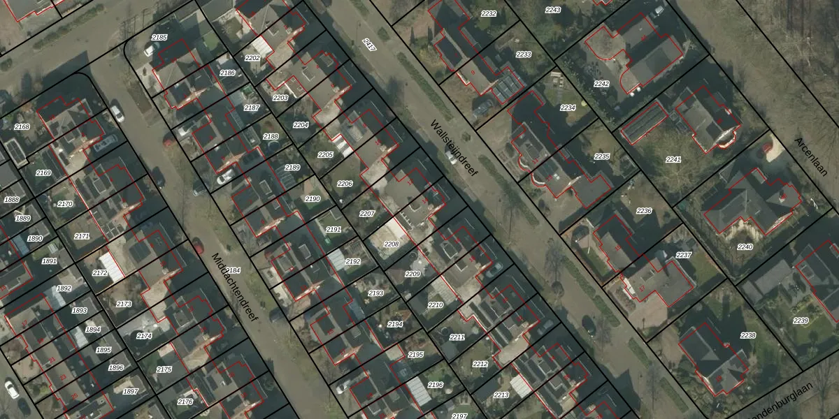 Het perceel waarop Wallsteijndreef 14 staat heeft een oppervlakte van 228 m². Dit is een middelgroot perceel. De perceeloppervlakte wordt geregistreerd door het Kadaster. Gedetailleerde informatie over de maten van dit perceel kunt u vinden in het rapport Kadastrale kaart met maatvoering van Wallsteijndreef 14.