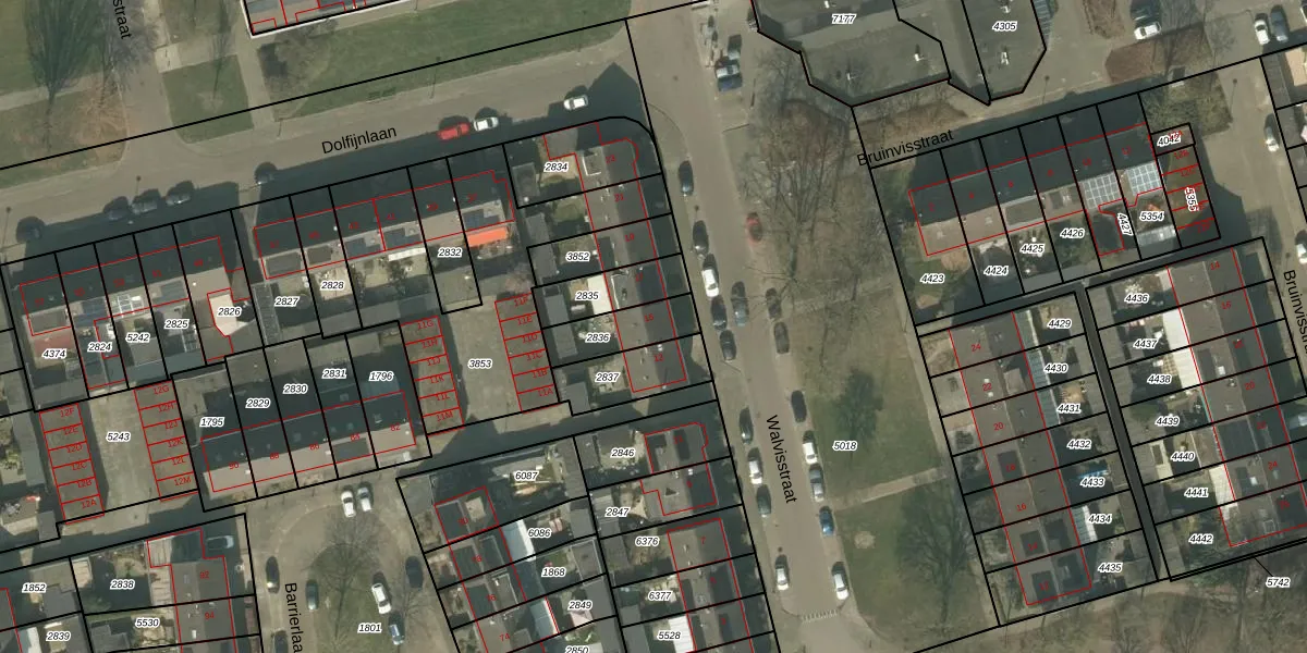 Gebruik de zoekbalk of klik op een perceel voor informatie over de adressen binnen dit perceel.