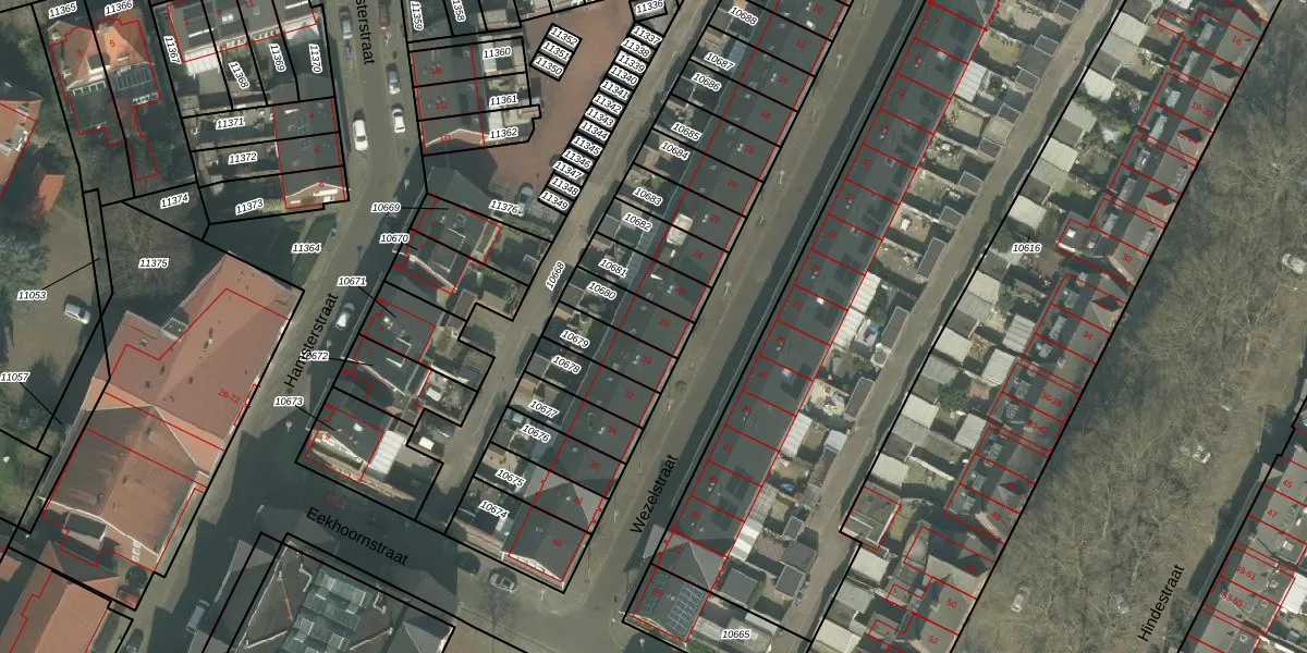 Gebruik de zoekbalk of klik op een perceel voor informatie over de adressen binnen dit perceel.