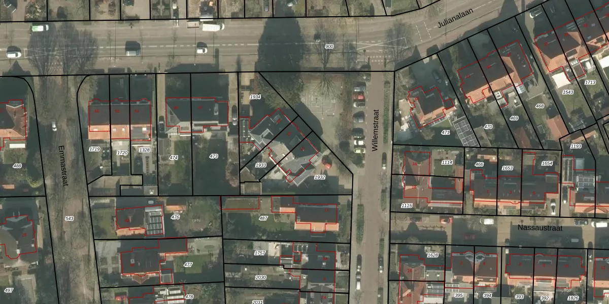 Het perceel waarop Willemstraat 13 staat heeft een oppervlakte van 440 m². Dit is een groot perceel. De perceeloppervlakte wordt geregistreerd door het Kadaster. Gedetailleerde informatie over de maten van dit perceel kunt u vinden in het rapport Kadastrale kaart met maatvoering van Willemstraat 13.