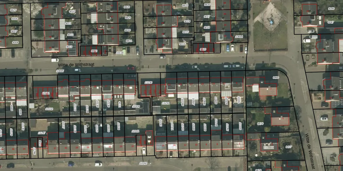 Het perceel waarop Witte de Withstraat 21 staat heeft een oppervlakte van 291 m². Dit is een middelgroot perceel. De perceeloppervlakte wordt geregistreerd door het Kadaster. Gedetailleerde informatie over de maten van dit perceel kunt u vinden in het rapport Kadastrale kaart met maatvoering van Witte de Withstraat 21.