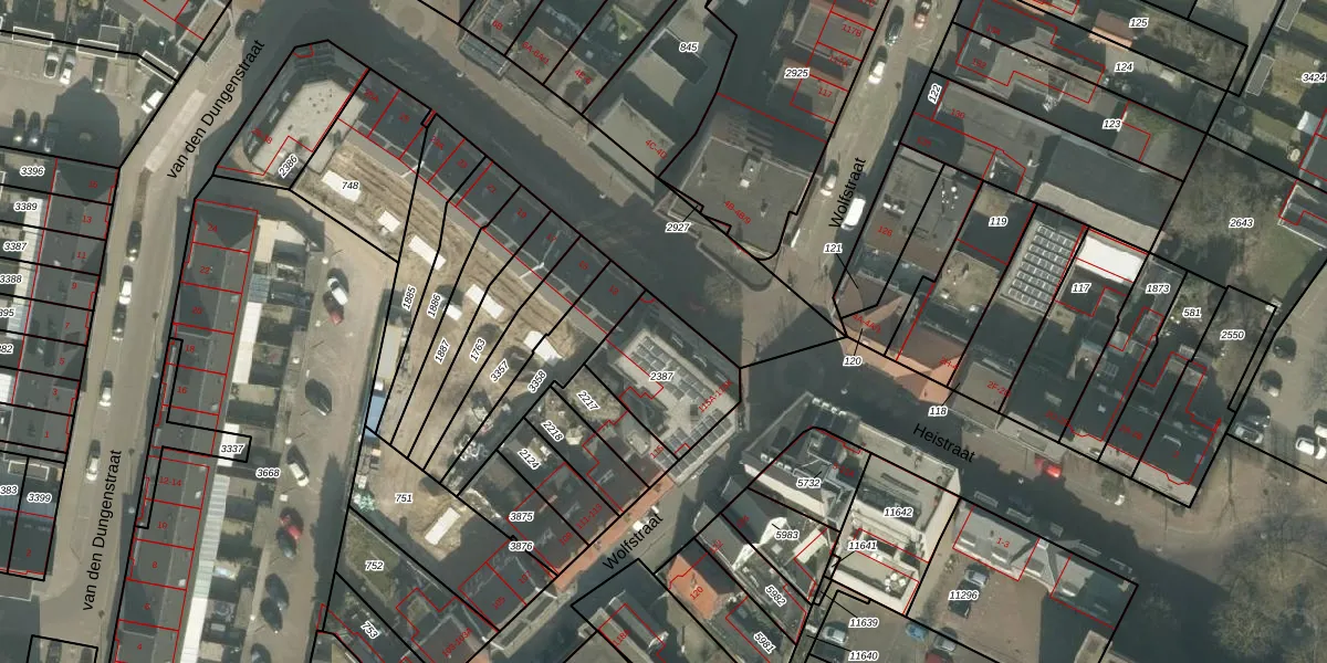 Het perceel waarop Wolfstraat 115-E staat heeft een oppervlakte van 333 m². Dit is een groot perceel. De perceeloppervlakte wordt geregistreerd door het Kadaster. Gedetailleerde informatie over de maten van dit perceel kunt u vinden in het rapport Kadastrale kaart met maatvoering van Wolfstraat 115-E.