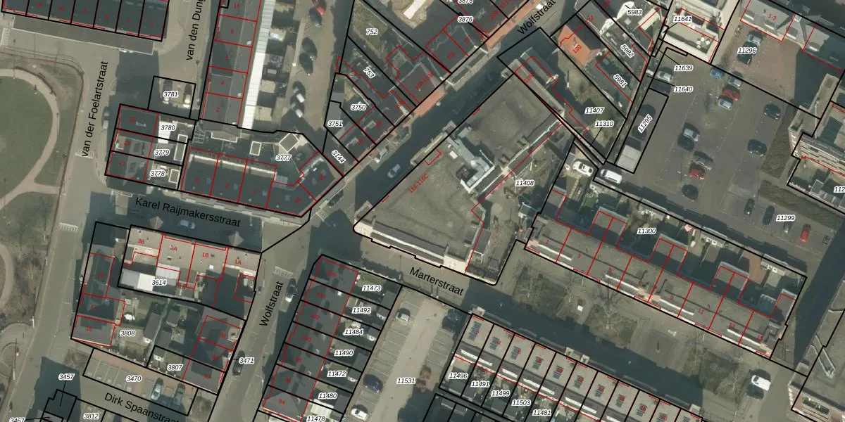 Wolfstraat 116-B is gelegen op kadastraal perceel HMD00C11408. Deze kadastrale aanduiding is uniek en wordt gebruikt door het Kadaster om eigendomsrechten en andere zakelijke rechten vast te leggen. Het perceel maakt onderdeel uit van de kadastrale gemeente Helmond.