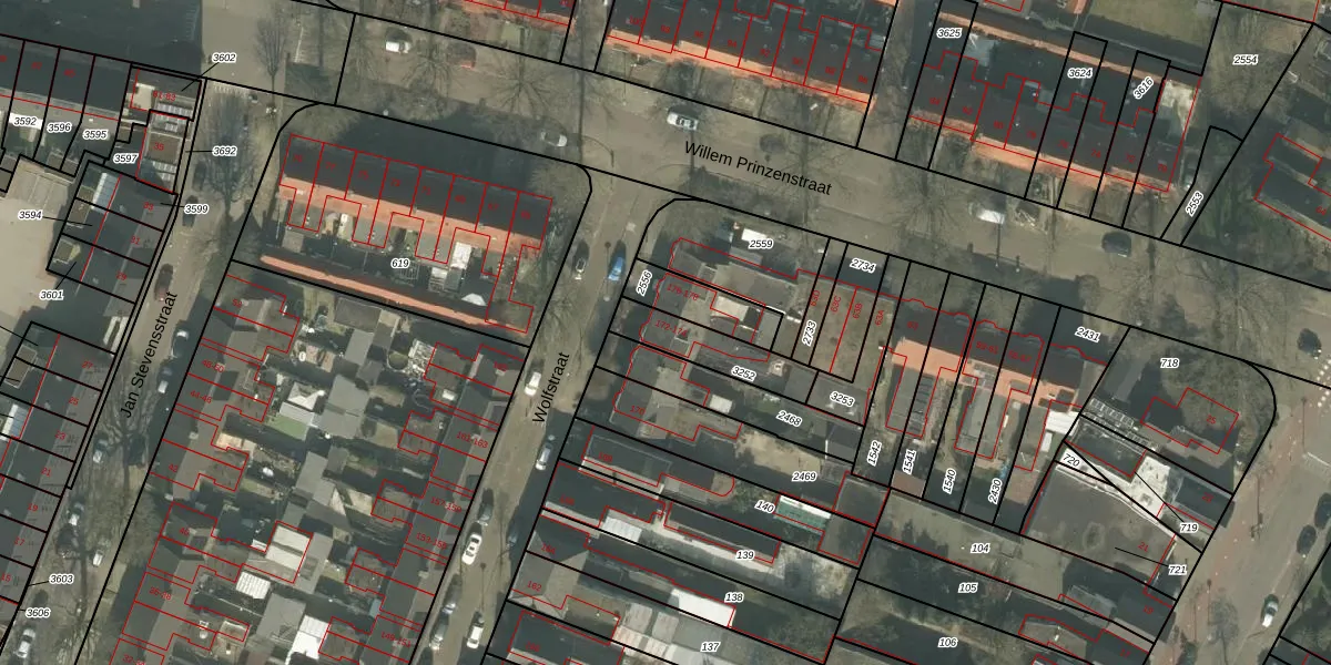 Het perceel waarop Wolfstraat 174 staat heeft een oppervlakte van 175 m². Dit is een middelgroot perceel. De perceeloppervlakte wordt geregistreerd door het Kadaster. Gedetailleerde informatie over de maten van dit perceel kunt u vinden in het rapport Kadastrale kaart met maatvoering van Wolfstraat 174.