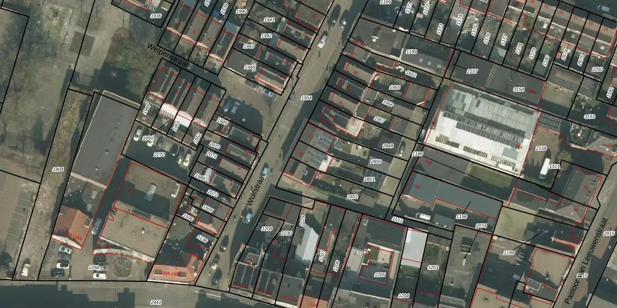Het perceel waarop Wolfstraat 20 staat heeft een oppervlakte van 213 m². Dit is een middelgroot perceel. De perceeloppervlakte wordt geregistreerd door het Kadaster. Gedetailleerde informatie over de maten van dit perceel kunt u vinden in het rapport Kadastrale kaart met maatvoering van Wolfstraat 20.