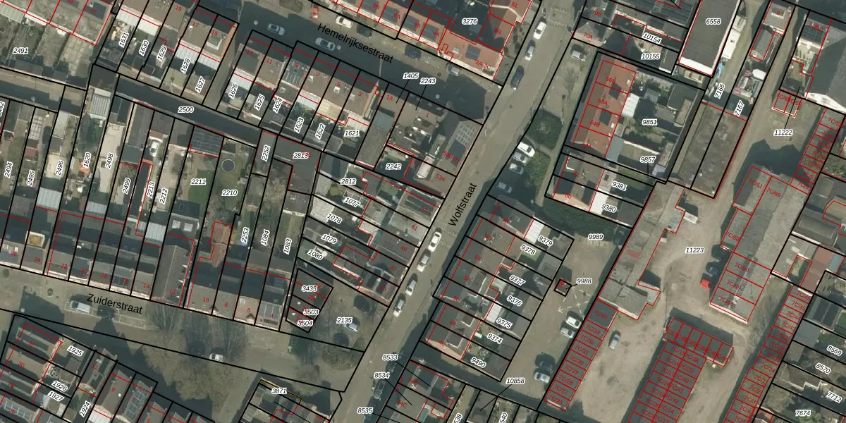 Het perceel waarop Wolfstraat 53 staat heeft een oppervlakte van 193 m². Dit is een middelgroot perceel. De perceeloppervlakte wordt geregistreerd door het Kadaster. Gedetailleerde informatie over de maten van dit perceel kunt u vinden in het rapport Kadastrale kaart met maatvoering van Wolfstraat 53.