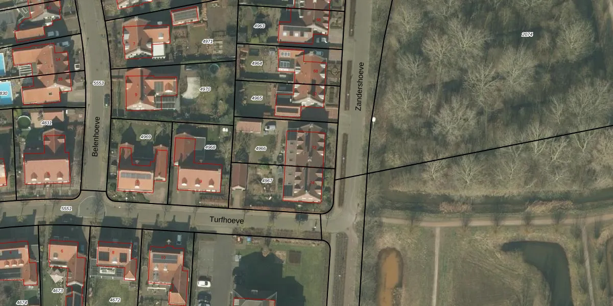Het perceel waarop Zandershoeve 72 staat heeft een oppervlakte van 510 m². Dit is een groot perceel. De perceeloppervlakte wordt geregistreerd door het Kadaster. Gedetailleerde informatie over de maten van dit perceel kunt u vinden in het rapport Kadastrale kaart met maatvoering van Zandershoeve 72.