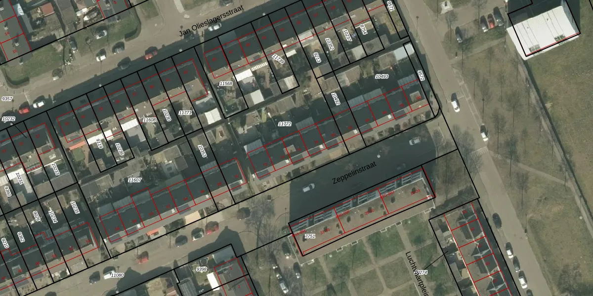 Het perceel waarop Zeppelinstraat 76 staat heeft een oppervlakte van 1881 m². Dit is een zeer groot perceel. De perceeloppervlakte wordt geregistreerd door het Kadaster. Gedetailleerde informatie over de maten van dit perceel kunt u vinden in het rapport Kadastrale kaart met maatvoering van Zeppelinstraat 76.