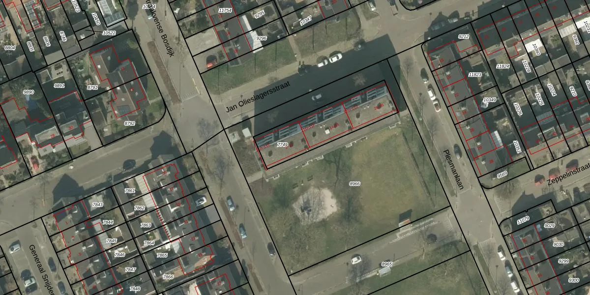 Het perceel waarop Zeppelinstraat 8 staat heeft een oppervlakte van 576 m². Dit is een groot perceel. De perceeloppervlakte wordt geregistreerd door het Kadaster. Gedetailleerde informatie over de maten van dit perceel kunt u vinden in het rapport Kadastrale kaart met maatvoering van Zeppelinstraat 8.