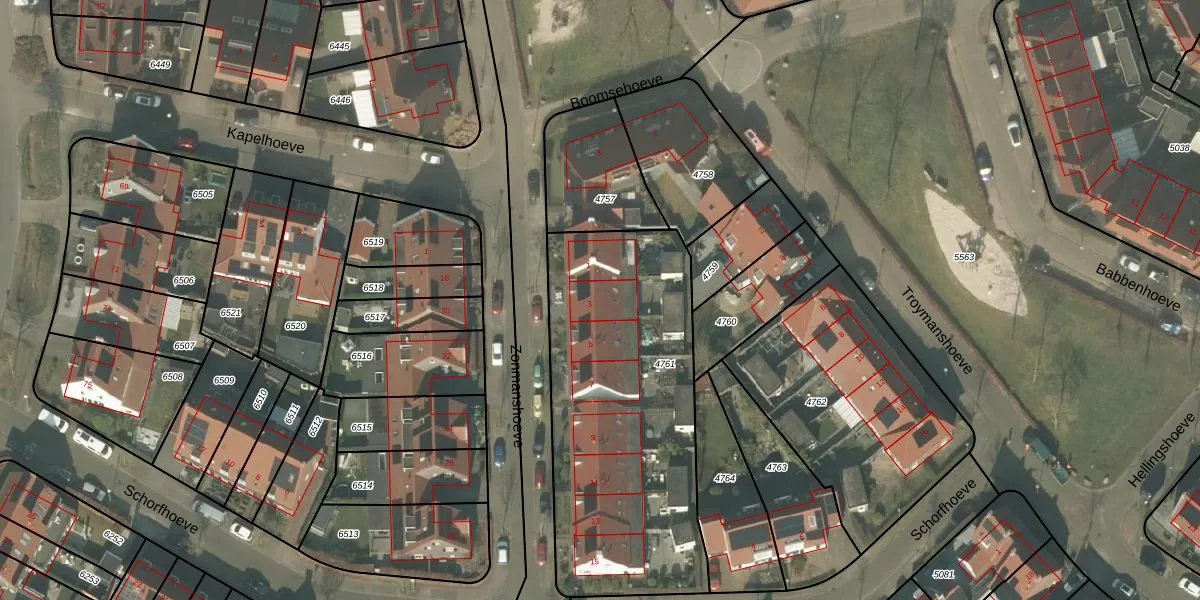Het perceel waarop Zonmanshoeve 3 staat heeft een oppervlakte van 1458 m². Dit is een zeer groot perceel. De perceeloppervlakte wordt geregistreerd door het Kadaster. Gedetailleerde informatie over de maten van dit perceel kunt u vinden in het rapport Kadastrale kaart met maatvoering van Zonmanshoeve 3.