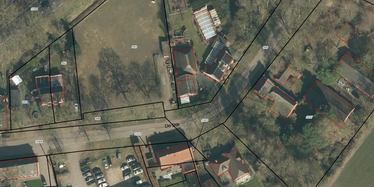 Het perceel waarop De Dijk 5 staat heeft een oppervlakte van 8950 m². Dit is een zeer groot perceel. De perceeloppervlakte wordt geregistreerd door het Kadaster. Gedetailleerde informatie over de maten van dit perceel kunt u vinden in het rapport Kadastrale kaart met maatvoering van De Dijk 5.