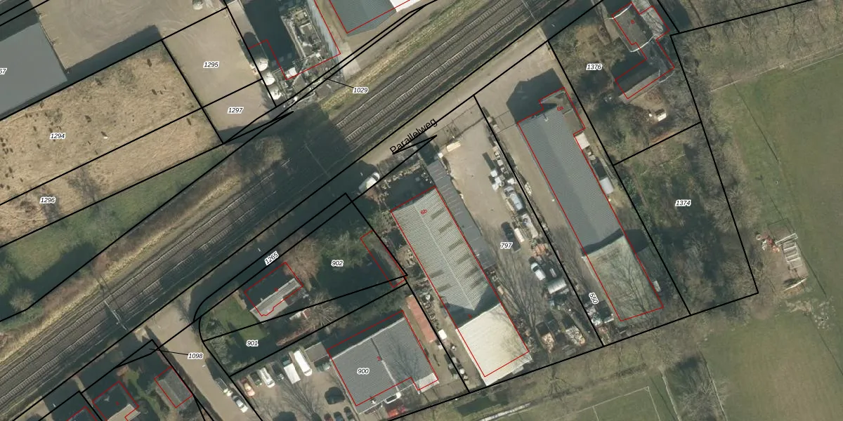 Het perceel waarop Parallelweg 6-b staat heeft een oppervlakte van 2040 m². Dit is een zeer groot perceel. De perceeloppervlakte wordt geregistreerd door het Kadaster. Gedetailleerde informatie over de maten van dit perceel kunt u vinden in het rapport Kadastrale kaart met maatvoering van Parallelweg 6-b.