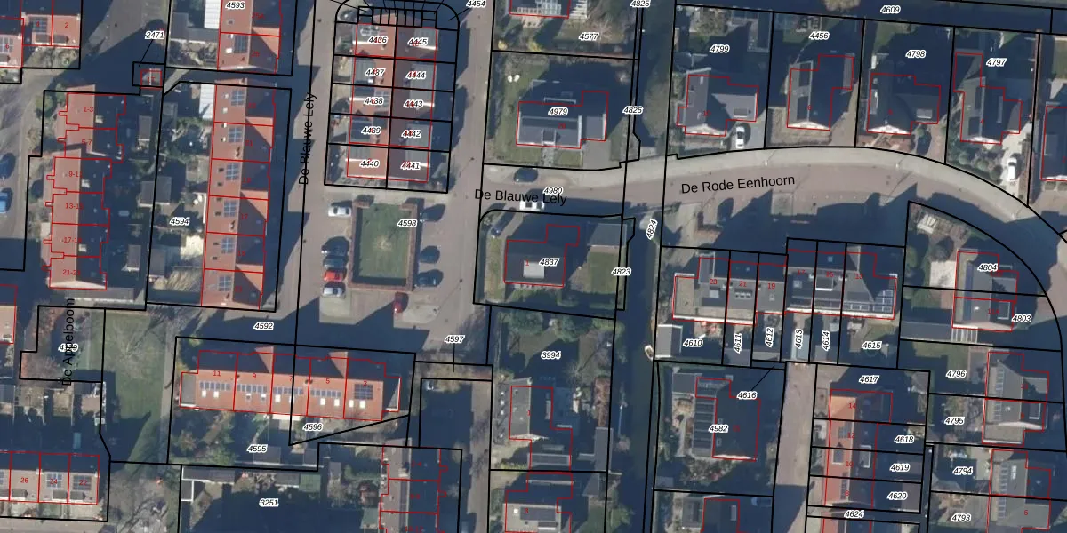 Het perceel waarop De Blauwe Lely 1 staat heeft een oppervlakte van 486 m². Dit is een groot perceel. De perceeloppervlakte wordt geregistreerd door het Kadaster. Gedetailleerde informatie over de maten van dit perceel kunt u vinden in het rapport Kadastrale kaart met maatvoering van De Blauwe Lely 1.