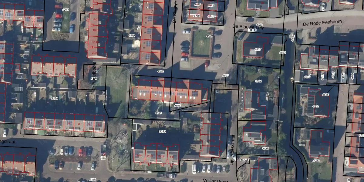 Het perceel waarop De Blauwe Lely 5 staat heeft een oppervlakte van 335 m². Dit is een groot perceel. De perceeloppervlakte wordt geregistreerd door het Kadaster. Gedetailleerde informatie over de maten van dit perceel kunt u vinden in het rapport Kadastrale kaart met maatvoering van De Blauwe Lely 5.