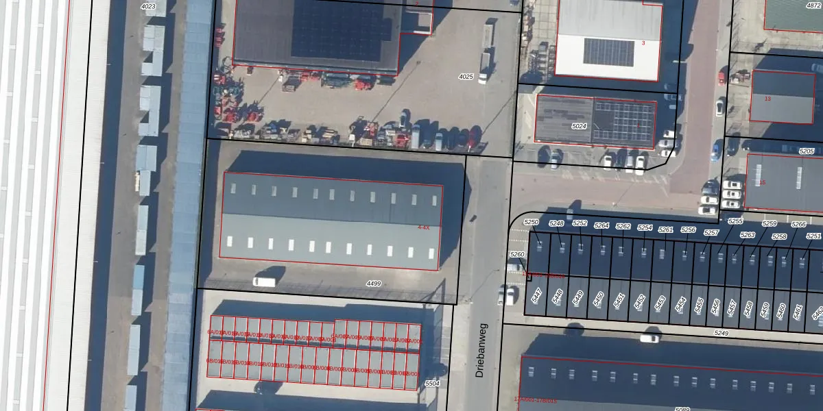 Het perceel waarop Driebanweg 4-A staat heeft een oppervlakte van 2335 m². Dit is een zeer groot perceel. De perceeloppervlakte wordt geregistreerd door het Kadaster. Gedetailleerde informatie over de maten van dit perceel kunt u vinden in het rapport Kadastrale kaart met maatvoering van Driebanweg 4-A.