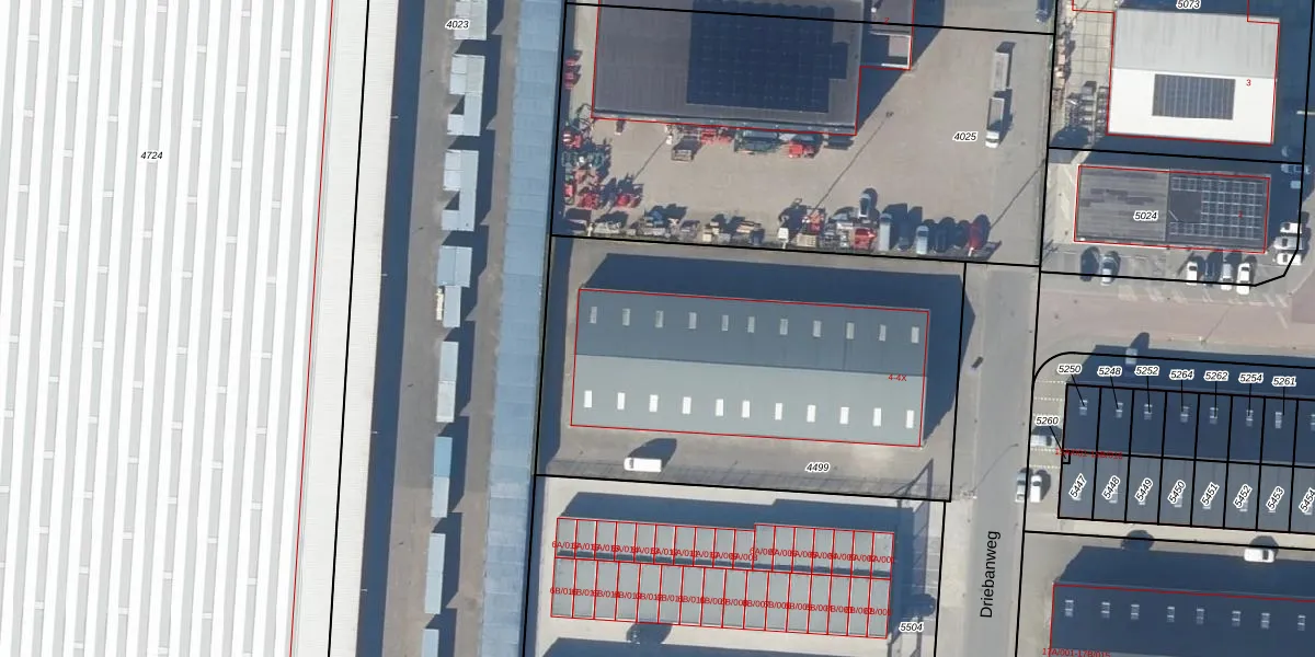 Het perceel waarop Driebanweg 4-H staat heeft een oppervlakte van 2335 m². Dit is een zeer groot perceel. De perceeloppervlakte wordt geregistreerd door het Kadaster. Gedetailleerde informatie over de maten van dit perceel kunt u vinden in het rapport Kadastrale kaart met maatvoering van Driebanweg 4-H.
