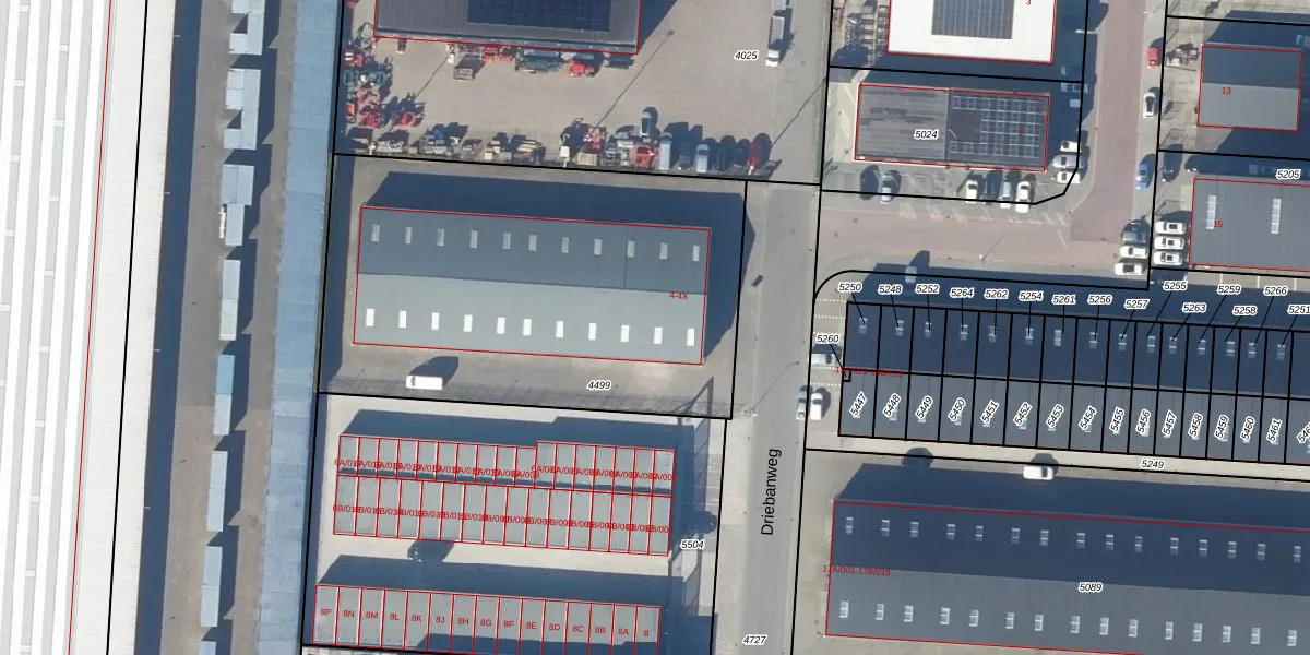 Het perceel waarop Driebanweg 4-M staat heeft een oppervlakte van 2335 m². Dit is een zeer groot perceel. De perceeloppervlakte wordt geregistreerd door het Kadaster. Gedetailleerde informatie over de maten van dit perceel kunt u vinden in het rapport Kadastrale kaart met maatvoering van Driebanweg 4-M.