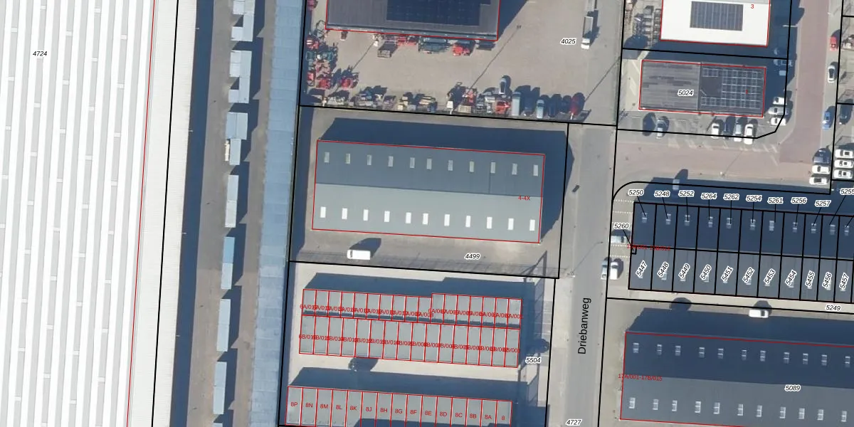 Het perceel waarop Driebanweg 4-S staat heeft een oppervlakte van 2335 m². Dit is een zeer groot perceel. De perceeloppervlakte wordt geregistreerd door het Kadaster. Gedetailleerde informatie over de maten van dit perceel kunt u vinden in het rapport Kadastrale kaart met maatvoering van Driebanweg 4-S.