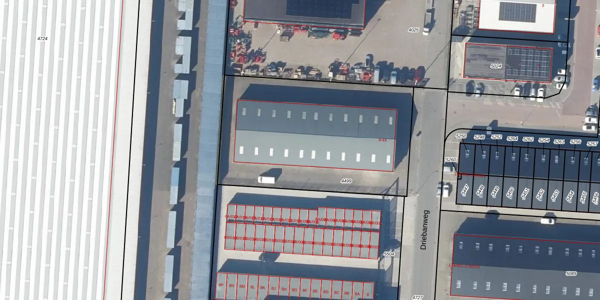 Het perceel waarop Driebanweg 4-T staat heeft een oppervlakte van 2335 m². Dit is een zeer groot perceel. De perceeloppervlakte wordt geregistreerd door het Kadaster. Gedetailleerde informatie over de maten van dit perceel kunt u vinden in het rapport Kadastrale kaart met maatvoering van Driebanweg 4-T.